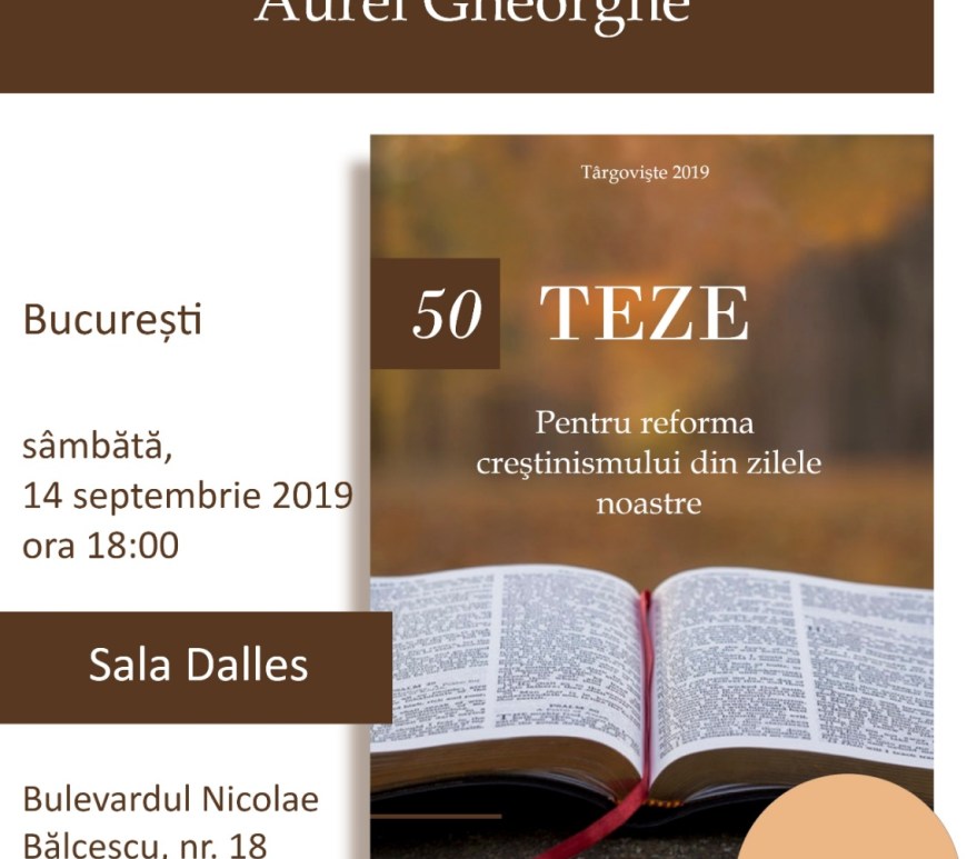 Domnul să fie slăvit pentru ultima întâlnire publică, de la Sibiu! Ne rugăm ca El să fie în mijlocul nostru și la următoarele prezentări, programate la Timișoara, miercuri, 25 septembrie și la Arad, vineri, 4 octombrie. Vă așteptăm cu drag! Continuă să citești Prezentare carte, Timișoara și Arad – 50 de teze pentru reforma creștinismului din zilele noastre, vol. II și III